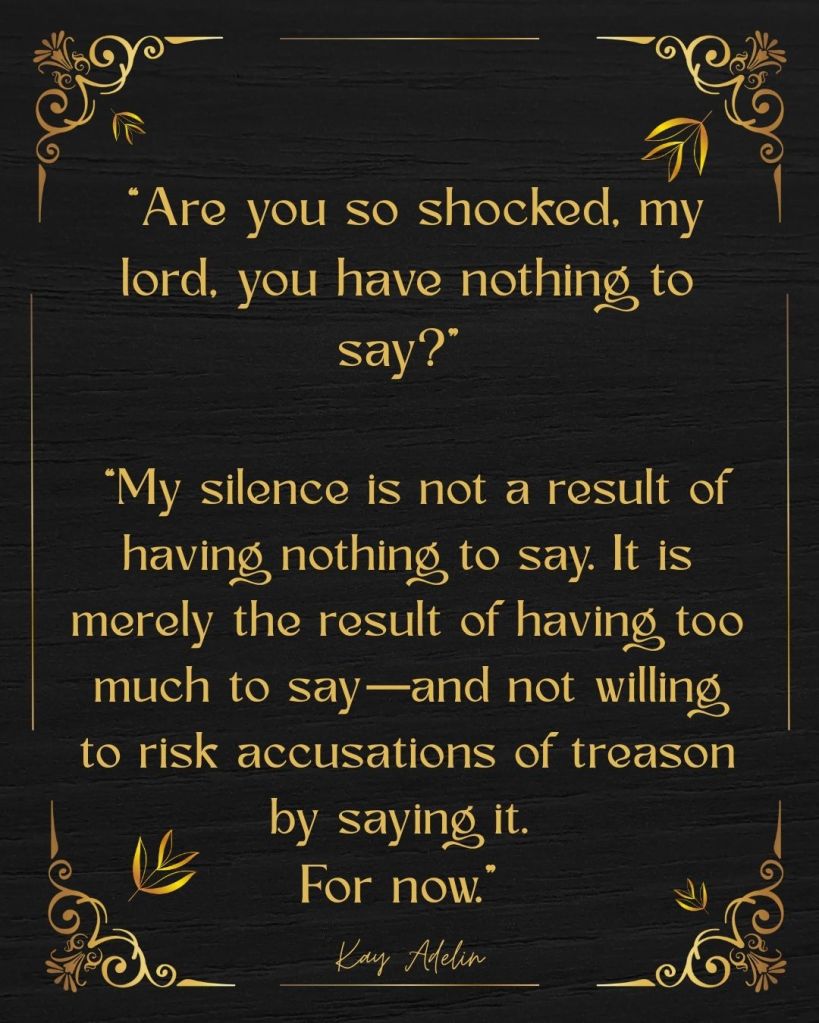 Something I have enjoyed about brainstorming and writing this story, though, is the ambiguity in it. While the blurb I wrote there seems more favorable towards Algerion, it’s merely because I haven’t yet explored Aurivier’s character and his side of the feud with Algerion. Each person believes they’re doing what’s best for their nation and king. It’s really anyone’s pick, who is the real bad guy here. (Feel free to speculate in the comments on any of this–maybe I’ll find some inspiration from your suggestions!)